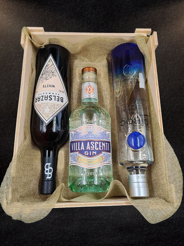 Σύνθεση Δώρου σε Ξύλινη συσκευασία 3 φιαλών (Κωδικός 6)